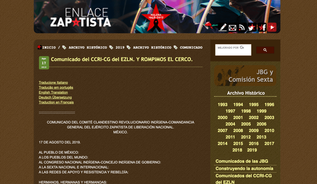 Enlace Zapatista: http://enlacezapatista.ezln.org.mx/