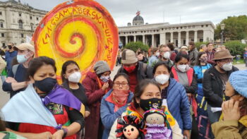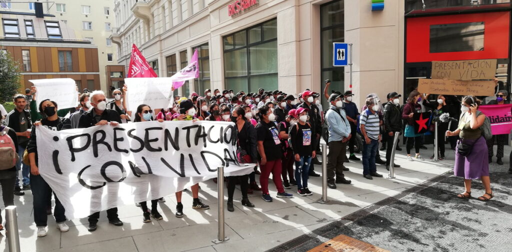Alrededor de 20 mujeres zapatistas y 30 hombres vinieron a reforzar el contingente internacionalista que se concentró frente a la embajada de México entre las 10 y las 12 horas en el lujoso centro histórico de la ex capital del imperio de los Habsburgo. Este acto de protesta inauguró una gran campaña internacional para denunciar el paramilitarismo y exigir la aparición con vida de José Antonio Sánchez Juárez y Sebastián Núñez Pérez, bases de apoyo zapatistas, integrantes de la Junta de Buen Gobierno “Nuevo Amanecer en Resistencia y Rebeldía por la Vida y la Humanidad” del Caracol 10 “Floreciendo la Semilla Rebelde” situado en Patria Nueva, cerca de Ocosingo, Chiapas.Ver mas…